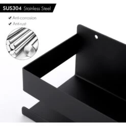 Shower Shelf Black, Bathroom Shelf Wall Mounted, Shower Caddy Screw Mounted Stainless Steel 40CM