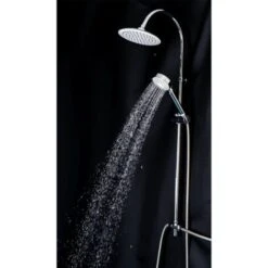Round Shower Riser Kit Chrome Dual Shower Heads Adjustable Overhead Bathroom