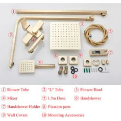 Gold Shower Panel Shower System Shower Shelf Set Solid Wall Shower Set Built-in Shower Gold