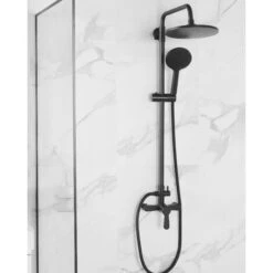 Modern Mixer Shower Set Brass Rain Function Wall Hanging Matt Black Farin