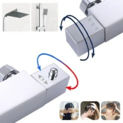 Acezanble Bathroom Thermostatic Mixer Shower Set All Square Chrome Twin Head Exposed Valve