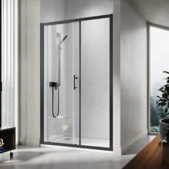 ELEGANT 760 X 760 Mm Sliding Corner Entry Shower Enclosure Door Cubicle Matt Black Frame