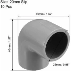 Size: 20mm slip 90° elbow fitting to connect two pipes at an angle Will not crack, change color or degrade over time unlike inferior PVC fittings Smooth interior finish to reduce friction and material buildup Supplied in quantities of 10