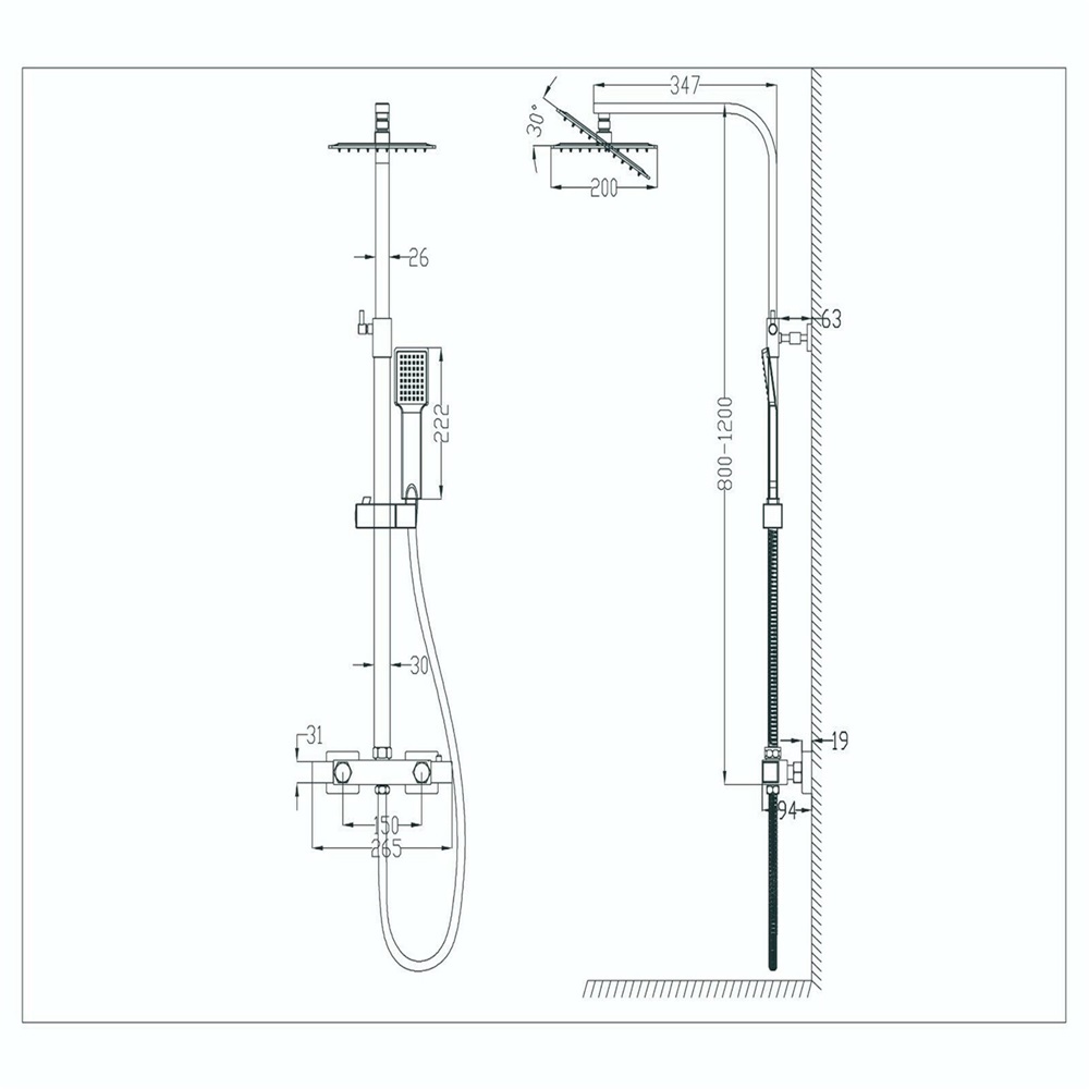 - Shower Top to Bottom Adjustability: 800mm ¨C 1200mm
