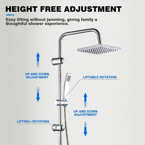 [High quality]: The shower column is made of 304 stainless steel and ABS plastic. Chrome coating finished surface, easy to clean, not easy to change color and corrosion, resistant to daily scratches