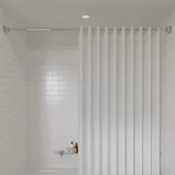 For ease of installation and a secure fixing, the Stick ‘n’ Lock Premium Telescopic Cubicle Rod in matt black can extend from 1295-2298mm and comes with 12 chrome plated c-shaped curtain rings included.