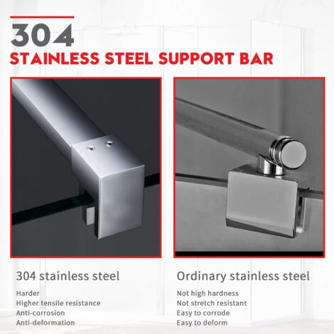 Each panel is manufactured from 8mm easy clean safety glass,What’s more,each panel comes with gorgeous polished aluminium profiles and can be fitted for either left or right hand entry,It also includes a T-shaped bracket,which fixes to your wall,ensures a safe and solid construction.