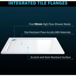 - 1200 x 800 x 40mm Rectangular shower tray (W x D x H)