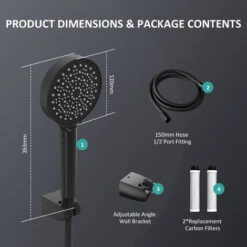 - Products include: Hand shower with 6 spraying methods + 1.5m stainless steel hose + 1 replacement carbon filter + 1 wall bracket