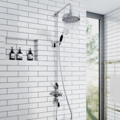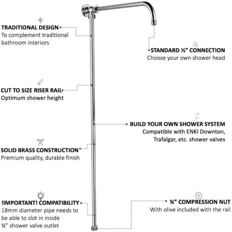 Our chrome finished rigid riser rails Downton are ideal for modern and classic bathrooms. The timeless colour, paired with the strong rail length makes it easy to connect the shower of your dreams with minimal effort. The product comes complete with the necessary wall bracket, allowing you to install it quickly and securely. A perfect solution for new bathroom projects; revamps and those looking to modernise their home. Available in highly reflective chrome, gold or antique bronze, exclusively from theHOUSE OF ENKI