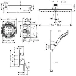 Features of All-in-one concealed shower set with 23cm overhead shower + 2 jets hand shower, Chrome, Hansgrohe Vernis Shape (VernisShape-1) :