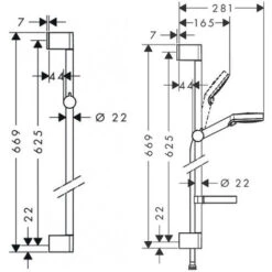 Features of the Vario shower set with two-jet hand shower, Unica’Croma 65 cm bar and Hansgrohe Crometta soap dish (26553400)Â :