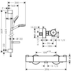 - Hansgrohe Crometta Vario shower set with two-jet hand shower, Unica’Croma bar 65 cm and soap dish (26553400)