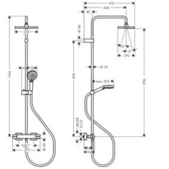 - Consists of: overhead shower, hand shower, Thermostatic shower mixer, shower hose, slider