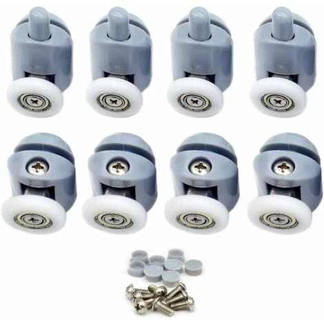 - 8 Piece Shower Door Rollers Single Wheels, includes 4 top rollers and 4 bottom rollers. Good for replacement shower door rollers.