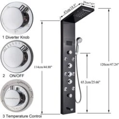 The Shower Panel Tower is constructed with the highest quality SUS304 stainless steel this shower panel is designed to provide only the most opulent of showers with its fully simultaneous functions and variable controls.