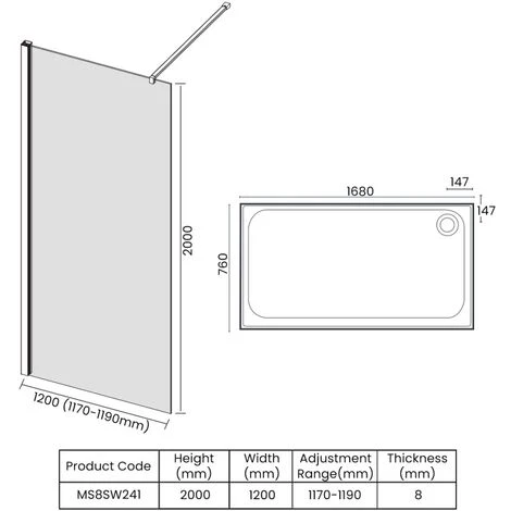 - Supplied complete with 1680 x 760mm Mstone Shower Tray
