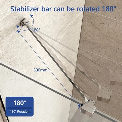 Meykoers 50cm Shower Enclosure Stabilizer Bar, Aluminum Alloy Stabilizer Bar for 6-8mm Wall Mount Shower Door Stabilizer Bar