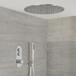 – Modern ceiling-mounted shower head to complement any contemporary bathroom