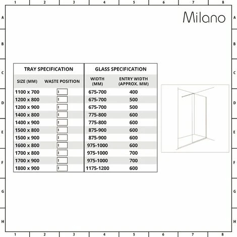 – Shower tray dimensions (WxDxH): 1100mm x 700mm x 30mm