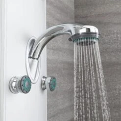 – Offers thermostatic temperature control to prevent scalding and freezing