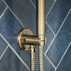 Milano Clarus – Modern Round Hand Shower Handset Outlet Elbow And Bracket – Brushed Brass