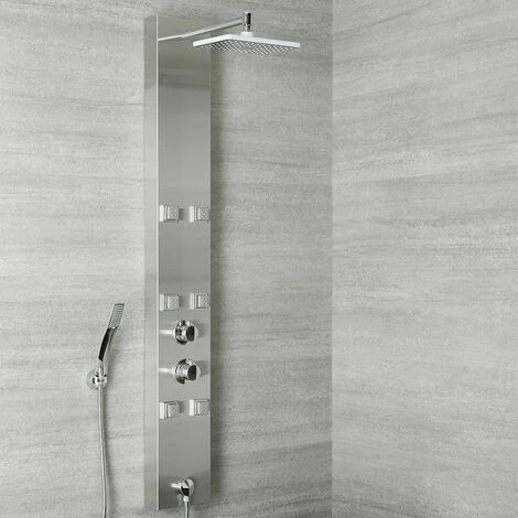 – Offers thermostatic temperature control to prevent scalding and freezing