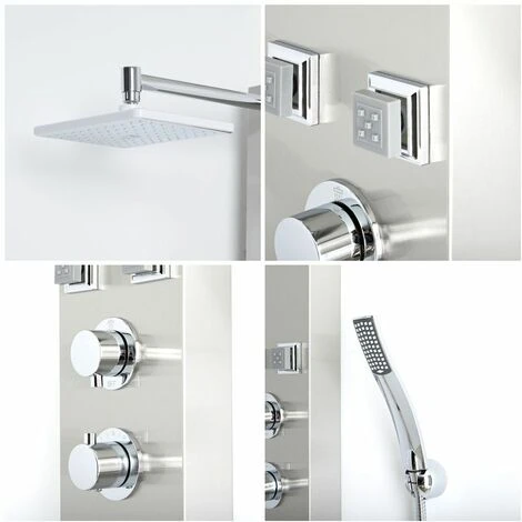 Please note: The shower head, hand shower and body jet functions cannot be operated simultaneously. The top of the shower head has a white finish but the rest is chrome.