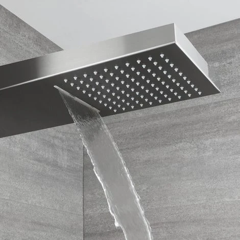 – Includes a fixed shower head with waterblade, pencil hand shower and four body jets
