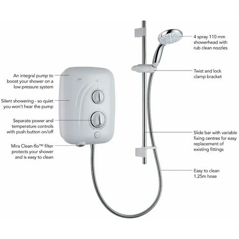 Easy to Clean Filter This Mira shower benefits from a removable Clean-flo filter to help protect your shower from debris and limescale – making it easier for you to keep your shower in tip-top condition! ? |
