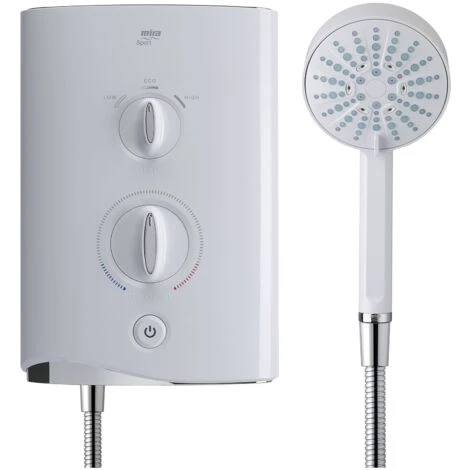 Easy To Use Temperature Control The Mira Sport Multi-Fit electric shower couldn’t be easier to use. With a simple push on the on/off button you can bring your shower to life and shut it back down again. The are two controls – one to select how powerful you want your shower (low, eco or high) and one to adjust the temperature, making it quick and straightforward to get your shower just right. Â |