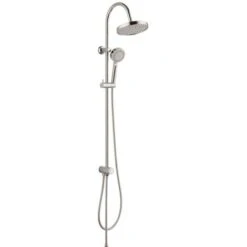 The shower system is made of metal and has a long service life. The unique design of the showerhead and the extra-large size offer a great shower experience. The hand shower with 5 settings has one push button with a diverter for easily switching between overhead shower to hand shower. There is a flexible metal shower hose, 150 cm long, which provides excellent mobility for different bathroom sizes.