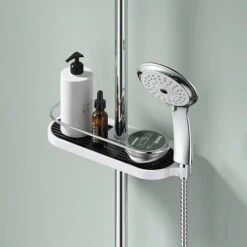 ăAesthetic and practicală: The shower soap holder has a shower gun seat, which can be used to place the shower and the gun, making full use of the bathroom space.ăEasy to installă: Shower rail is an instant design, easy to install, no punching, no rod removal.ăEasy to cleană: The soap dish base is detachable, easy to clean, hygienic and antibacterial. ăHealth and Sanitationă: The shower frame adopts louvered drainage flaps and an open design, which can ventilate and drain quickly and reduce the growth of bacteria.ăEasy to useă: The movable tray can be raised and lowered, the height can be controlled, and it can be raised and lowered according to personal needs.