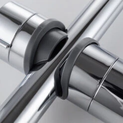 Holds securely, won’t slip even when rail is wet. Holds shower head and rail cleanly.