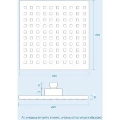 - Overhead shower dimensions – 200mm x 200mm x 8mm
