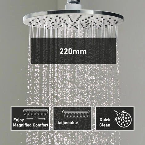 Shower head size: 22 cm in diameter