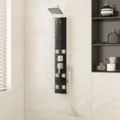 This multifunctional shower panel system has a stylish design and will make a great addition to your bathroom.
