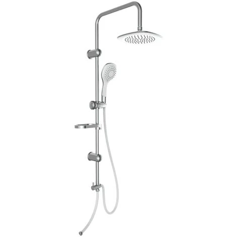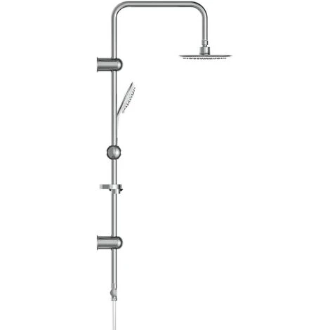 This shower set is made of metal material and has chrome finishing. You can switch from head shower to hand shower via the diverter. The hand shower has a shower hose of 1.5 meters and is adjustable in height, making it perfect to meet your shower demands.