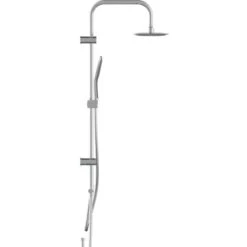This shower set is made of metal materials and has chrome finishing. You can switch from head shower to hand shower via the diverter. The hand shower has a shower hose of 1.5 meters and is adjustable in height, making it perfect to meet your shower demands.