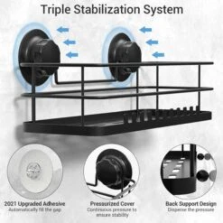 Double Layer Bathroom Shelf, More Capacity The Luxear shower caddy provides enough space for your bulky supplies (shampoo/gel bottles shower). The fully perforated iron plate prevents small parts such as toothbrushes from falling. The Luxear shower caddy is also equipped with 22 hooks, on which you can hang towels and razors.