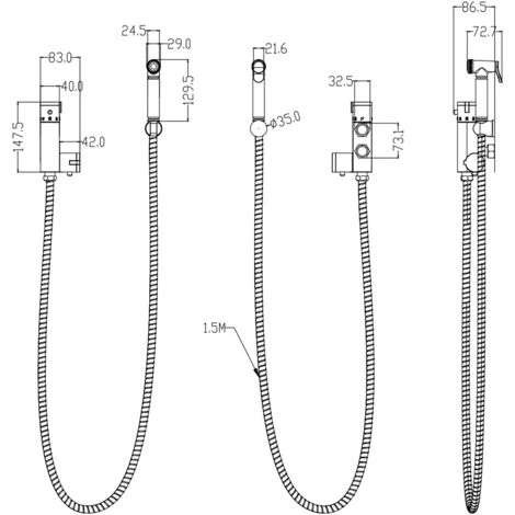 - Shower hose: G1/2″ 150cm flexible stainless steel hose