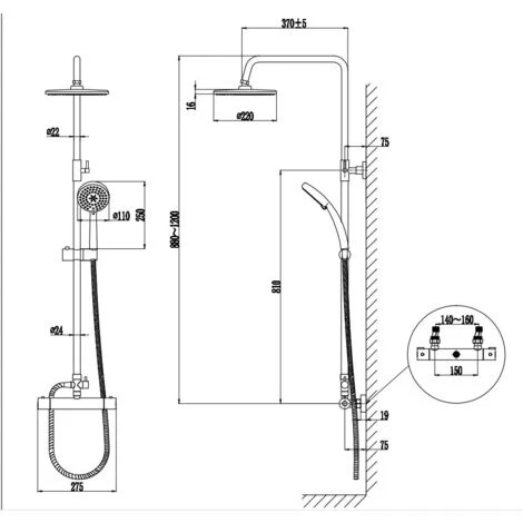 - Shower Top to Bottom Adjustability: 880mm 1200mm