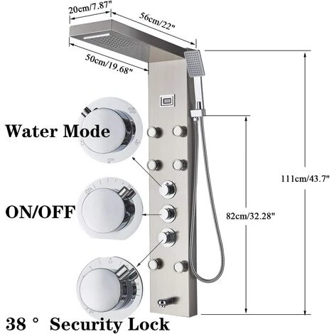 ❤Safe Shower: 38° thermostatic control valve and temperature screen can control the water temperature well, enjoy bathing and prevent family burns.