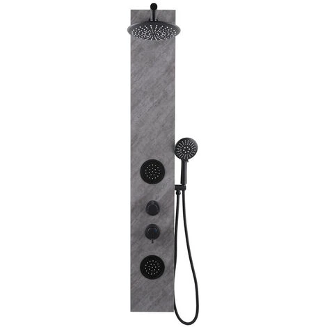 Features of Hydromassage shower column with stone decor, Hand shower, 2 jets, Round shower head, black (STONESHOWER):