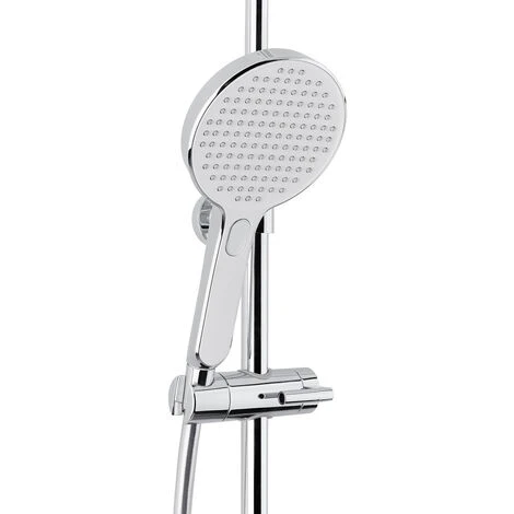 This shower set has a 25.4cm round XL shower head, slider and 3 jets hand shower with a button allowing you to easily change the spray.