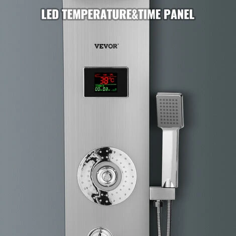 - 【PREMIUM QUALITY】- Adopt 304 stainless steel and brass connectors, this shower system is high-temperature resistant, anti-rust and leakage-proof. With brushed craft, it is cool, luxury and sleek. Also with a LED screen to display real-time water temperature and shower time.