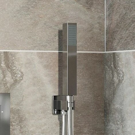 Square Handset Holder Water Outlet If you have a shower handset you don’t want it to just hang down your wall looking awkward. This handset holder features a stylish square design and will hold your shower handset in place, allowing it to be at easy reach for when it is needed. The handset holder also features a water outlet which is designed to be used with a concealed shower valve. |