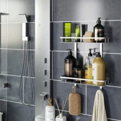 3. 【RUST-FREE AND DURABLE AND STRONG BEARING】 -Manufactured; made of aluminum alloy. Rustproof, non-fading, scratch resistant and durable. It is as new as before after being taken. used for a long time. Don’t worry about heavy objects falling. Put bath supplies or kitchen utensils on the shower shelf, it always stays balanced without tipping.